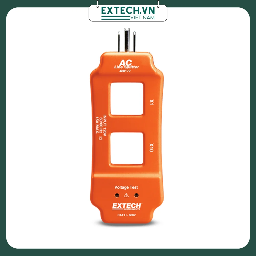 Extech 480172 là thiết bị chia dòng AC giúp kiểm tra nhanh và an toàn các đường điện xoay chiều 120V mà không cần cắt phích cắm hay tách dây dẫn. Khi được kết nối giữa ổ cắm AC 120V và thiết bị cần kiểm tra, bộ chia sẽ tách dây nóng (live) ra khỏi dây trung tính và dây nối đất.