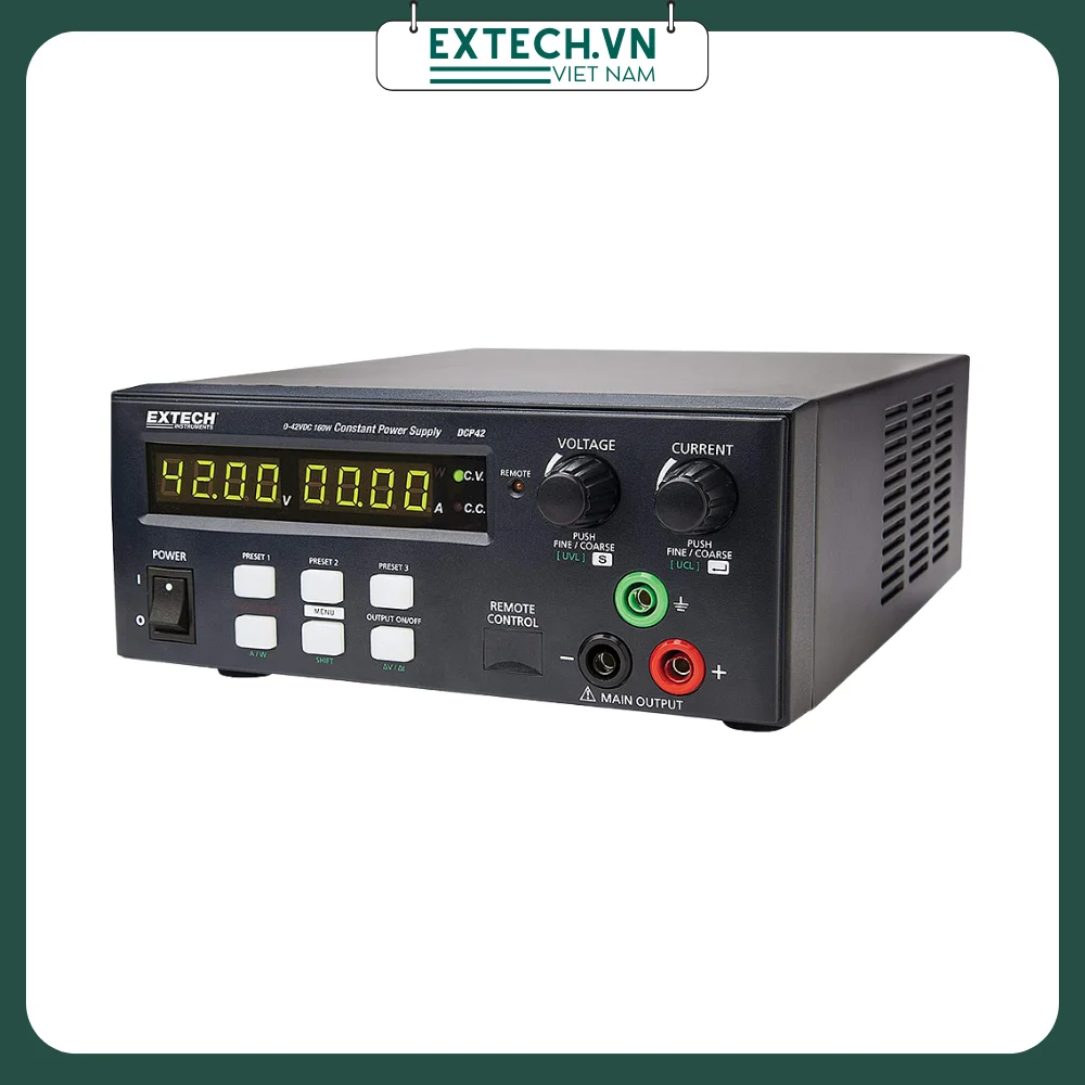 Bộ chuyển nguồn Extech DCP42 có công suất chuyển mạch 160W là bộ nguồn 1 chiều. Bộ nguồn Extech DCP42 có 1 đầu ra duy nhất liên tục điều chỉnh dòng điện và điện áp. Ngoài ra bạn có thể cài đặt 3 mức điện áp và dòng điện tùy chọn.