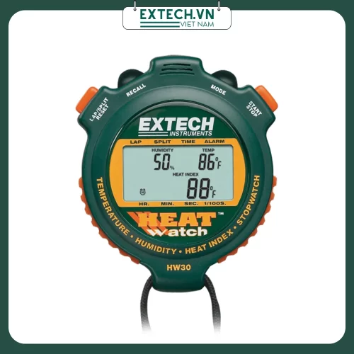 Đồng hồ bấm giờ Extech HW30 là dòng đồng hồ bấm giờ đa chức năng. Extech HW30 hiển thị bộ đếm thời gian lên / xuống, nhiệt độ, độ ẩm và chỉ số nhiệt. Việc đo chỉ số nhiệt cho thấy cảm giác nóng khi độ ẩm được kết hợp với nhiệt độ thực tế. Lý tưởng để sử dụng trong điều kiện thời tiết nóng. Các tính năng bổ sung bao gồm đồng hồ 12/24 giờ, đồng hồ bấm giờ, bộ nhớ 30 lap / split và báo động lập trình.