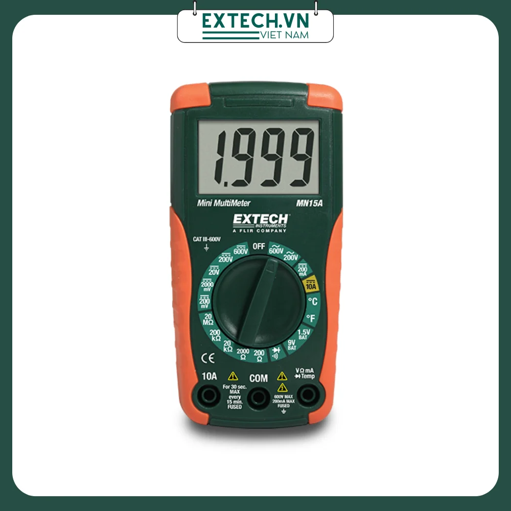 Extech MN15A Digital Mini Multimeter là đồng hồ vạn năng số nhỏ gọn, cầm tay, giá rẻ. Với khả năng đo nhiệt độ với đầu dò kiểu K và dòng điện áp lên tới 600V. Đồng hồ vạn năng Extech MN15A đo cả dòng AC/DC, đo dòng điện lên tới 20A.