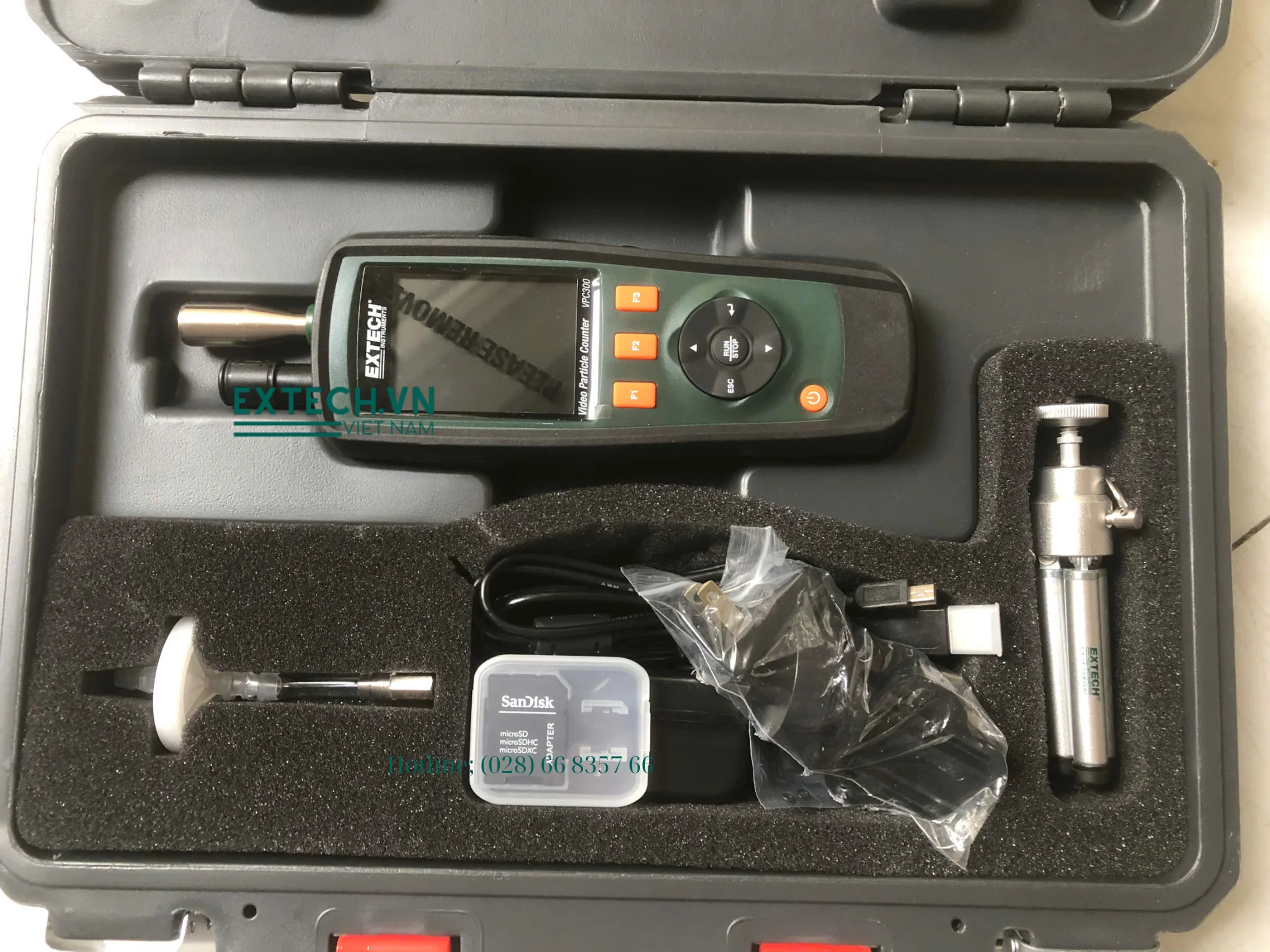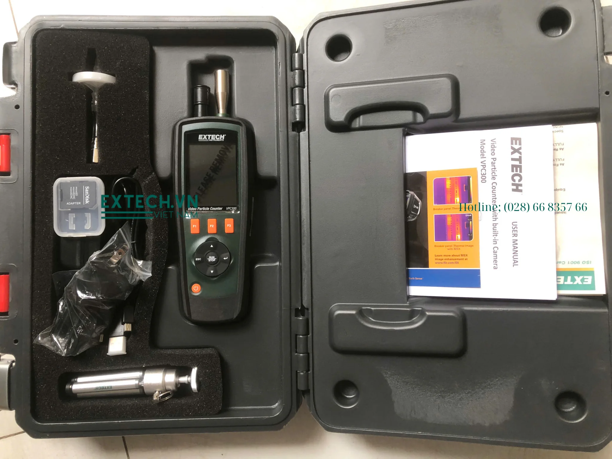 Extech VPC300 là máy đếm hạt có Camera tích hợp. Máy đếm hạt tích hợp camera Extech VPC300 đo tới 6 kênh kích thước hạt cộng với nhiệt độ không khí và độ ẩm tương đối. Được sử dụng để quay video và ảnh được lưu vào bộ nhớ trong hoặc thẻ micro.