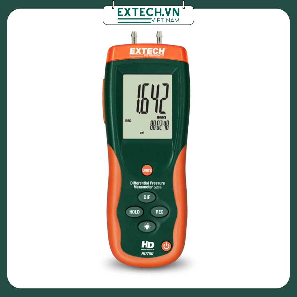 Với 11 đơn vị đo có thể lựa chọn, Máy đo chênh áp HD700 có thể hoạt động như một đồng hồ đo chênh áp có dải đo thấp/độ phân giải cao hoặc cung cấp chênh áp lên đến 0 đến 55,40 in. H2O (inch nước). Ghi dữ liệu Max/Min và dấu thời gian tương đối là những tính năng hữu ích, cũng như chức năng Giữ dữ liệu và Tự động Tắt nguồn của HD700. HD700 2psi cũng có chức năng Zero để hiệu chỉnh hoặc đo độ lệch và giao diện USB tích hợp.