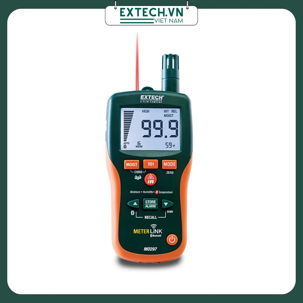 Extech MO297 có bộ phát Bluetooth MeterLink truyền không dây dữ liệu độ ẩm và độ ẩm cho các máy ảnh hồng ngoại nhiệt FLIR được chọn (b60, i60, B-Series và T-Series) để kết hợp các chỉ số đồng hồ với hình ảnh nhiệt. MeterLink giải phóng công cụ ghi nhiệt từ quy trình thủ công thu thập dữ liệu thực địa.