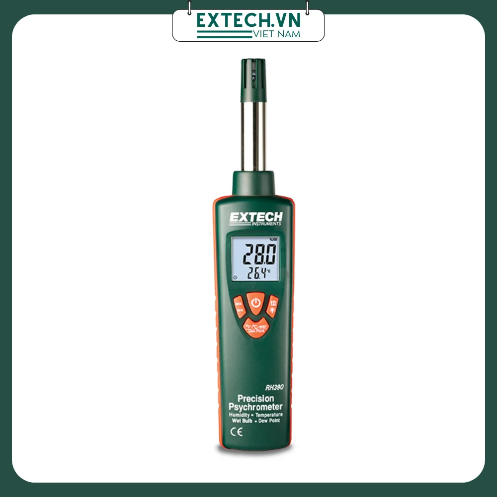 Máy đo độ ẩm Extech RH390 không chỉ đo độ ẩm không khí, mà còn đo được nhiệt độ điểm sương, nhiệt độ không khí. Đo bầu ướt, với phạm vi khá rộng.