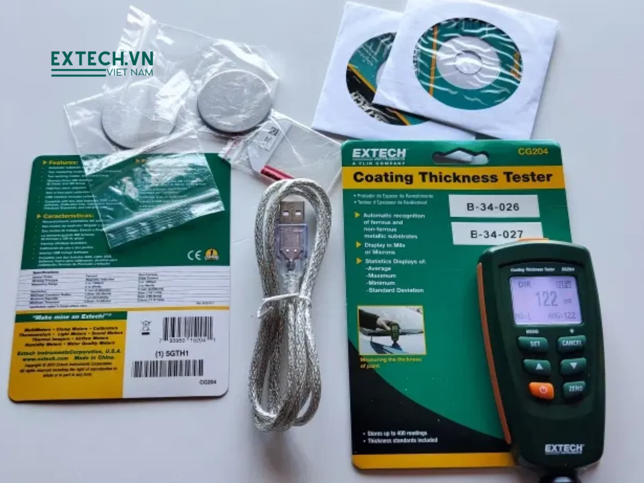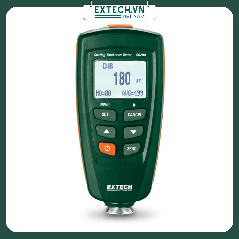 Extech CG204 là máy đo cầm tay được thiết kế để đo độ dày lớp phủ mà không cần phá hủy mẫu, với khả năng tự động nhận biết chất nền từ tính (ferrous) và phi từ tính (non-ferrous).
