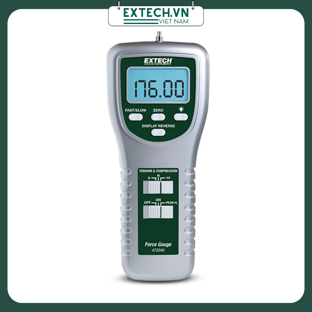 475040 là Máy đo lực kỹ thuật số với màn hình LCD 5 chữ số và giữ đỉnh. Đầu dò đo tế bào tải độc quyền. Trong phạm vi, pin thấp và chỉ báo chức năng tiên tiến. Công suất đo 5kg / 176oz / 49 Newton. Độ chính xác cơ bản là 0,4%. Hoàn thành với thanh căng, hộp đựng và 4 bộ điều hợp (flathead, hình nón, đục và móc cho căng) và 6 pin AA.