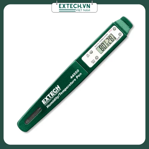 Extech 44550 là thiết bị đo độ ẩm và nhiệt độ dạng bút. Máy có màn hình LCD kép, hiển thị đồng thời độ ẩm tương đối và nhiệt độ (có thể chuyển đổi giữa °C/°F).