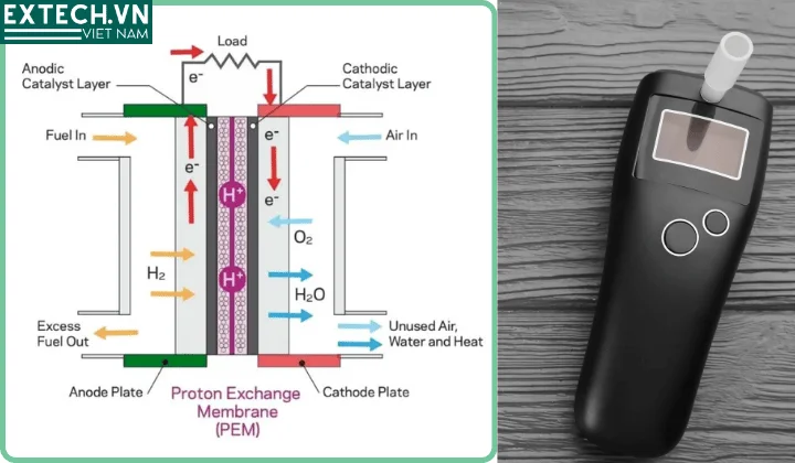 Đây là công nghệ cao cấp, thường được sử dụng trong các thiết bị chuyên nghiệp. Bên trong cảm biến gồm hai điện cực (thường là bạch kim) và một lớp màng polymer. Khi ethanol đi vào, nó sẽ xảy ra phản ứng oxy hóa, tạo ra dòng electron.