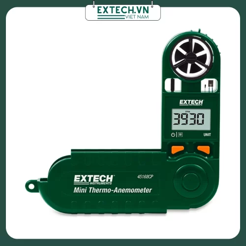 Extech 45168CP là máy đo tốc độ gió cầm tay mini có khả năng đo tốc độ gió theo các đơn vị: ft/min, MPH, m/s, km/h, knots và thang Beaufort, với chức năng tính trung bình 10 giây. Ngoài ra, thiết bị còn đo được nhiệt độ, độ ẩm tương đối, điểm sương, nhiệt độ ướt và chỉ số gió lạnh (wind chill).