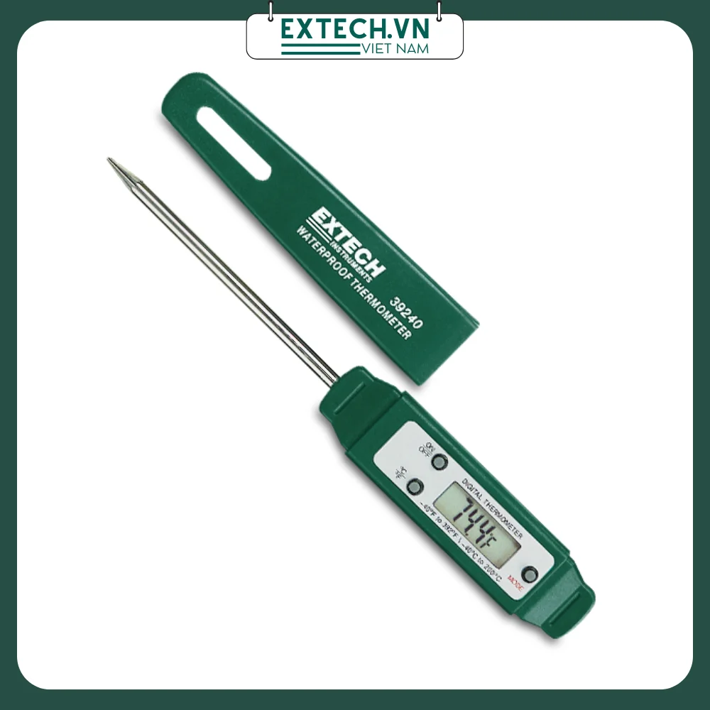 Nhiệt kế chống thấm Extech 39240 thiết kế nhỏ nhẹ, trọng lượng chỉ 0,7 ounce. Lý tưởng cho lĩnh vực đo nhiệt độ thực phẩm, chất lỏng, kho đông lạnh. Thiết kế chắc chắn chống rơi vỡ, bền bỉ với thời gian.
