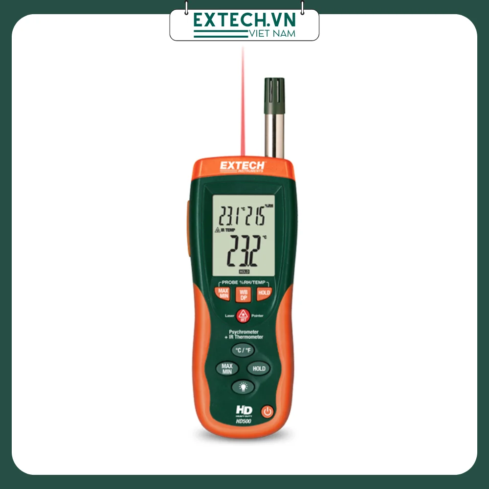 Nhiệt kế hồng ngoại Extech HD500: Máy đo độ ẩm và nhiệt kế kiểu K